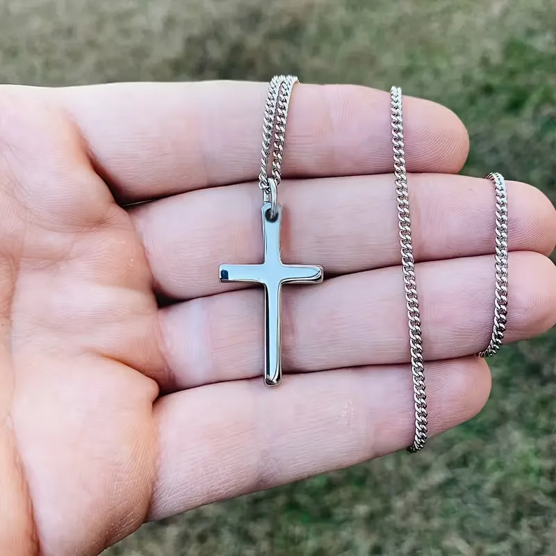 Este colar masculino de aço inoxidável com pingente de cruz combina design minimalista com resistência incomparável, tornando-se o acessório perfeito para o homem moderno.